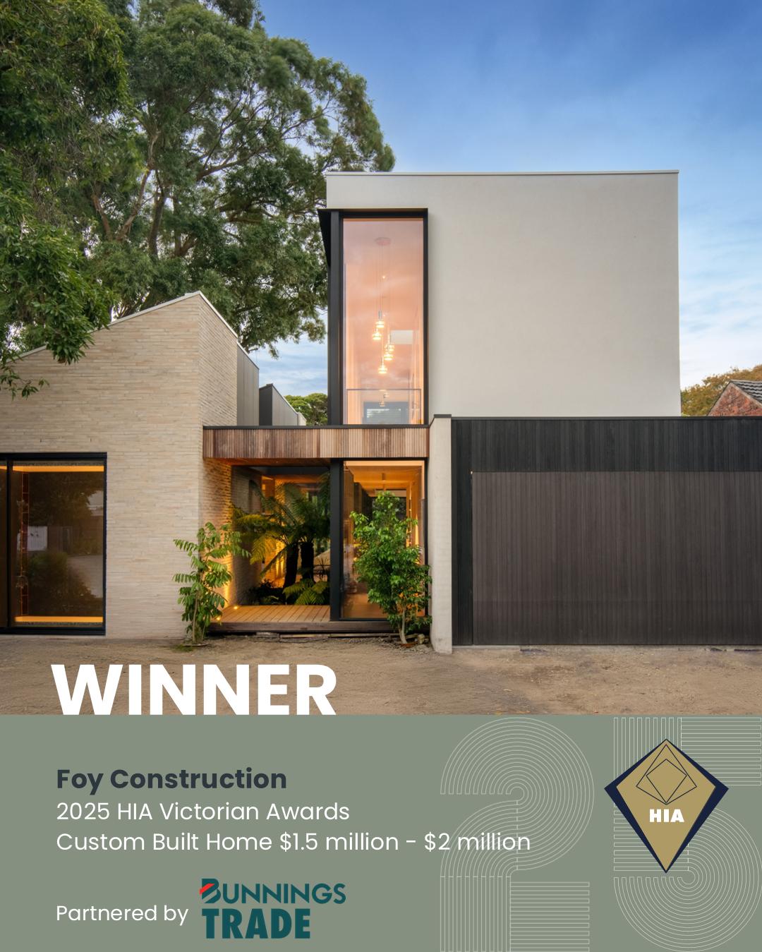About UsFoy Construction is a family building company formerly of Bayside Melbourne, now based on the Bellarine Peninsula. Building since 1976 our focus is on high quality custom built homes and renovations as well as commercial projects. We manage each stage of the build from beginning to handover, taking pride in guiding our clients through every step of the project, ensuring clear communication and a seamless process throughout. Read More | Our ProjectsRead More | AwardsOur expertise and passion has earned us prestigious awards, including HIA Winner and Finalist. Find out more here.